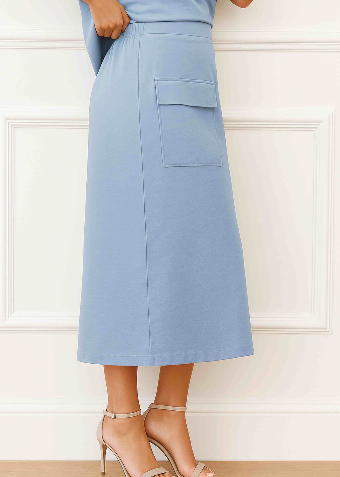 Saia Emily é a peça-chave para quem busca praticidade com um toque de elegância. Com comprimento midi e caimento soltinho, valoriza a silhueta de forma confortável e versátil. O design minimalista é complementado pelo bolso lateral com aba, que adiciona estilo e funcionalidade. Confeccionada em tecido leve e macio, é ideal para compor looks modernos tanto para o dia a dia quanto para ocasiões casuais mais refinadas. Combine com regatas, blusas ou camisas para um visual contemporâneo e cheio de personalidade.